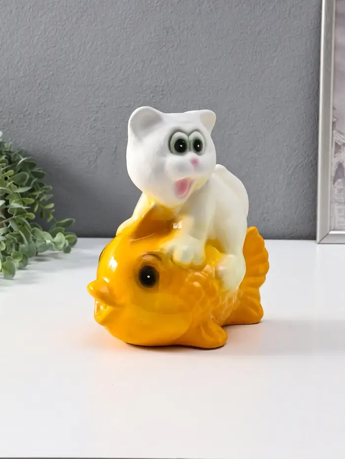 Копилка "Кот на рыбке" 21 см