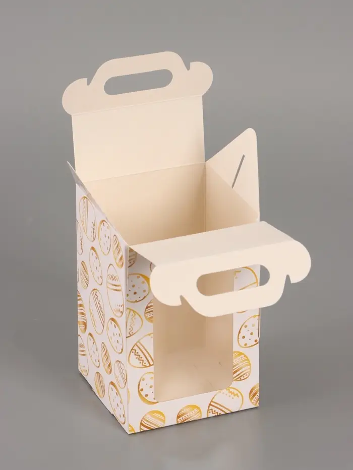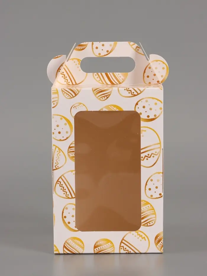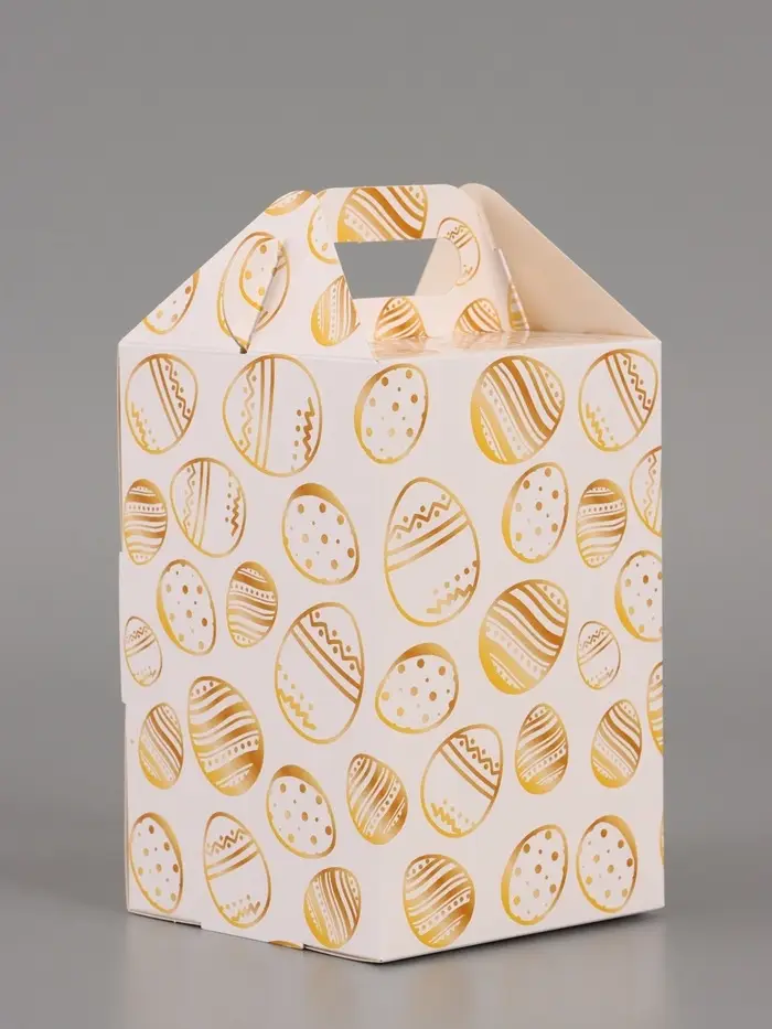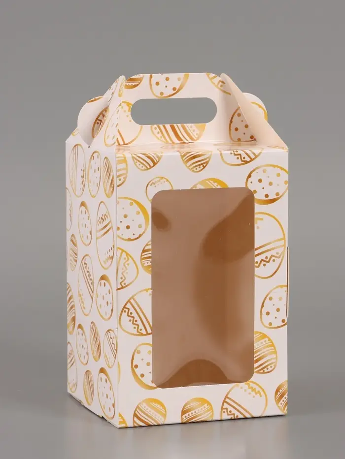 Пасхальная коробочка с окном и с ручкой "Золотые яйца" 10 х 10 х 15 см