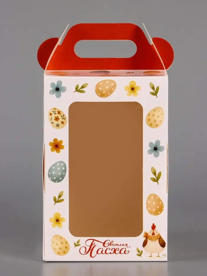 Коробка подарочная пасхальная, с окном и с ручкой «Курочки» 10×10×15 см