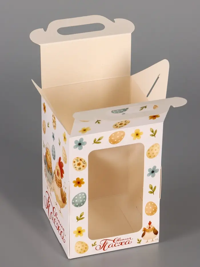 Коробка подарочная пасхальная с окном «Цыплята» 15×15×18 см