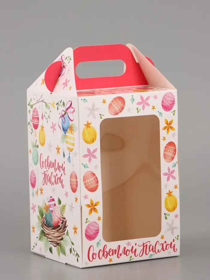 Пасхальная коробочка с окном и с ручкой "Светлой Пасхи" 10 х 10 х 15 см