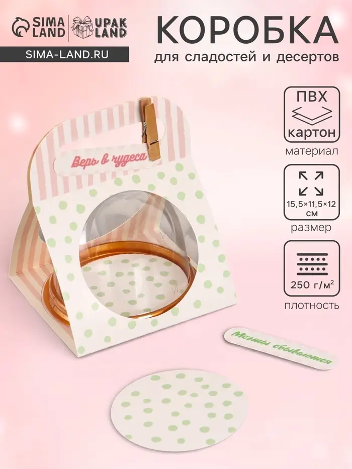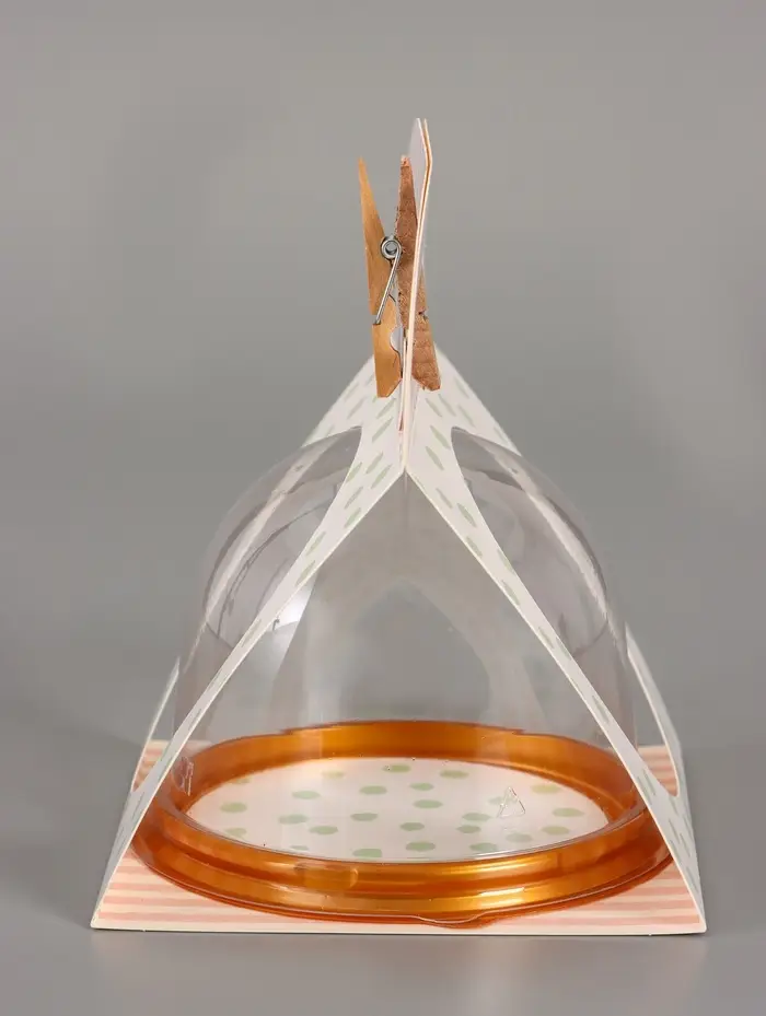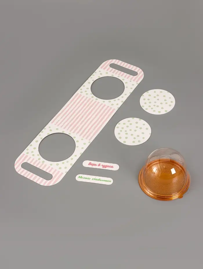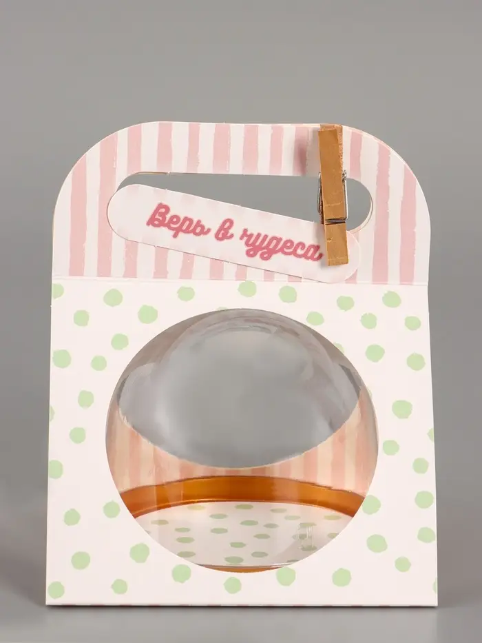 - Прозрачный купол для эффектной презентации: Прозрачная верхняя часть из ПВХ полностью открывает вид на подарок, привлекая к нему внимание. Картонное основание с ярким принтом служит стильным акцентом.