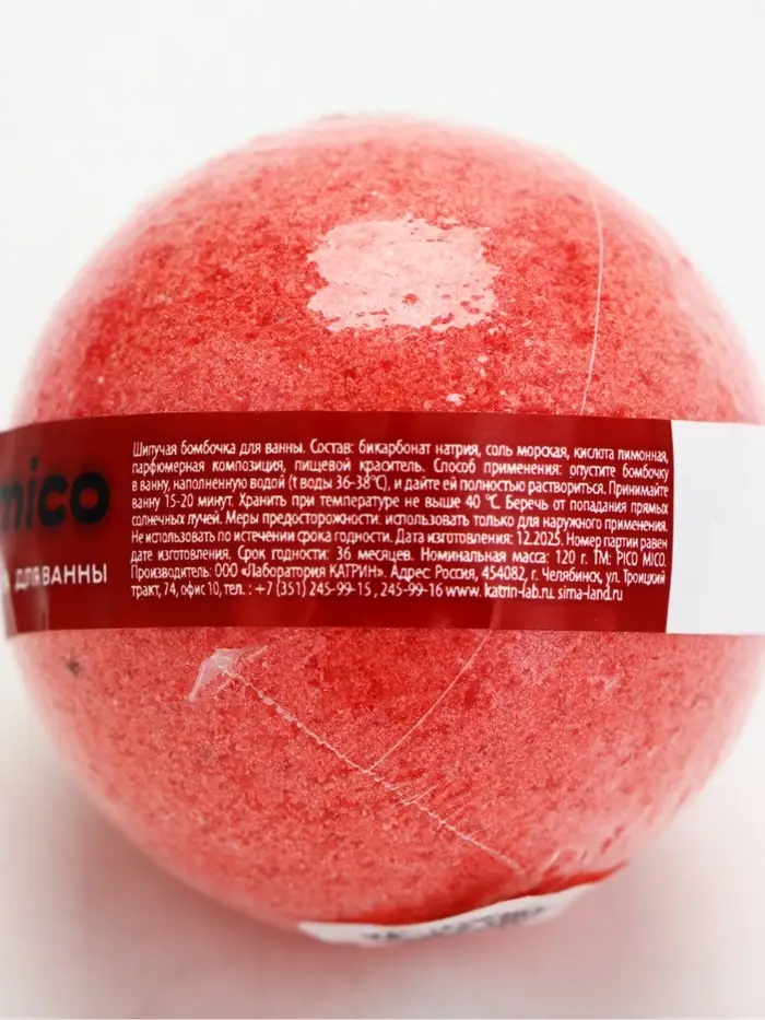 Бомбочка для ванны, 120 г, аромат дикая вишня, PICO MICO