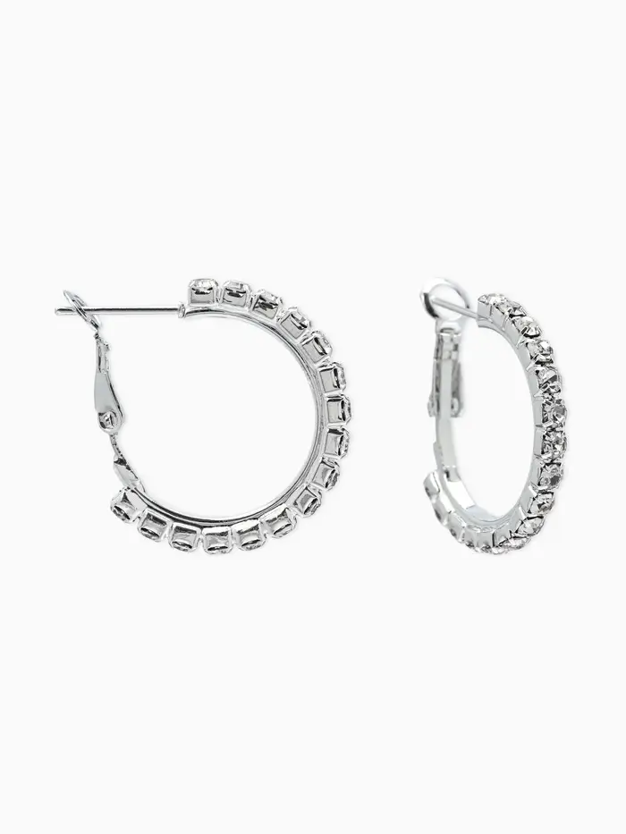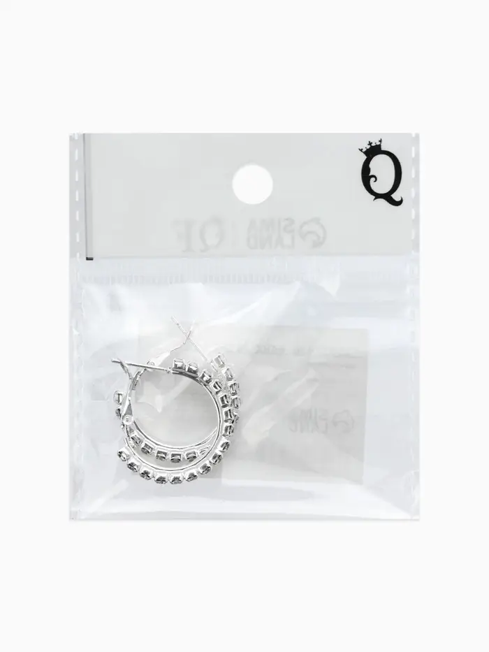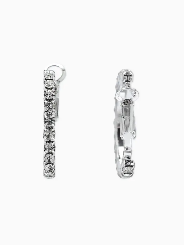 Серьги-кольца со стразами d=2.5 см, белые в серебре