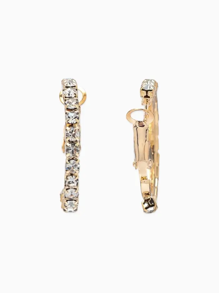 Серьги-кольца со стразами d=2.5 см, белые в золоте