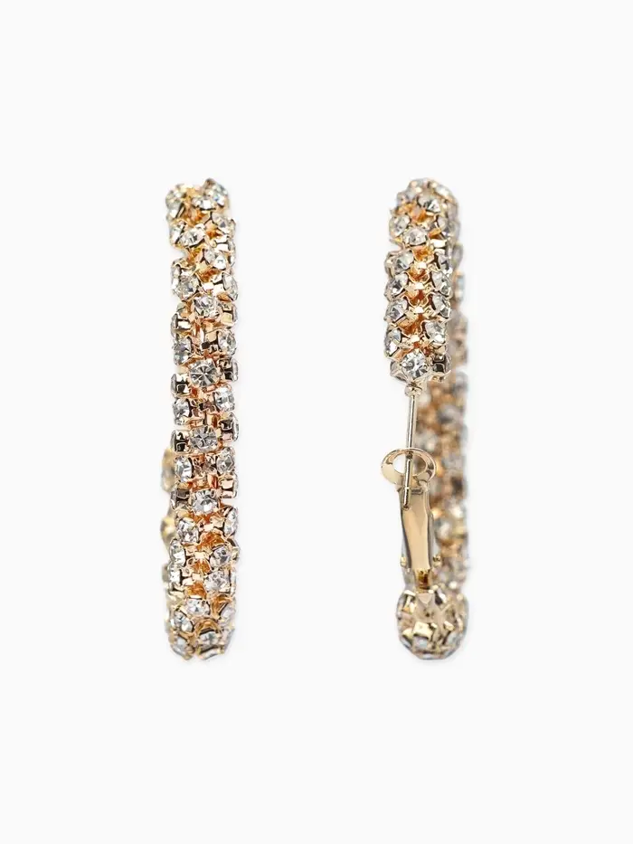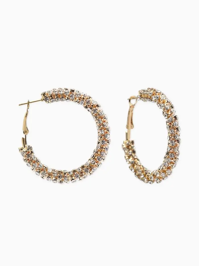 Серьги-кольца со стразами «Россыпь», d=4.5 см, белые в золоте