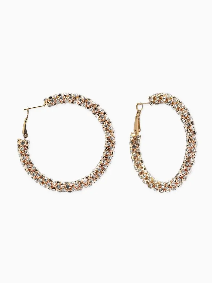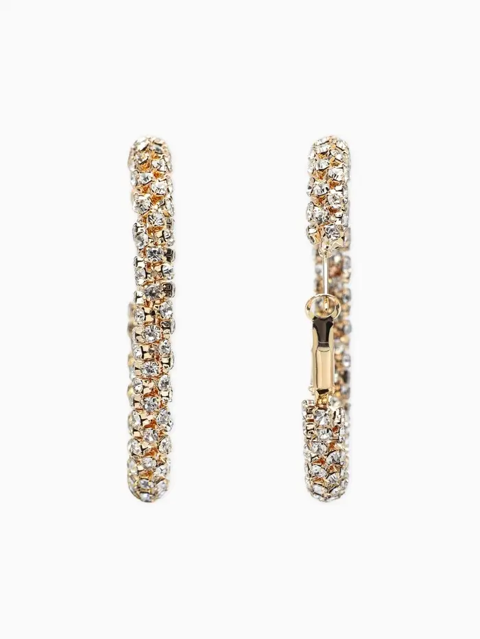 Серьги-кольца со стразами «Россыпь», d=5.5 см, белые в золоте