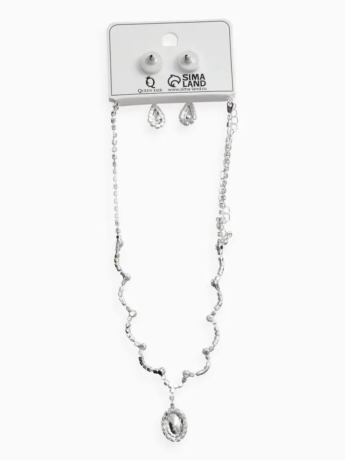 Набор 2 предмета: серьги, колье «Вечерний шик. Капля», бело-красный в серебре