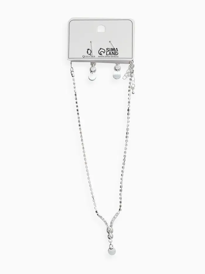 Набор 2 предмета: серьги, колье «Вечерний шик», белый в серебре