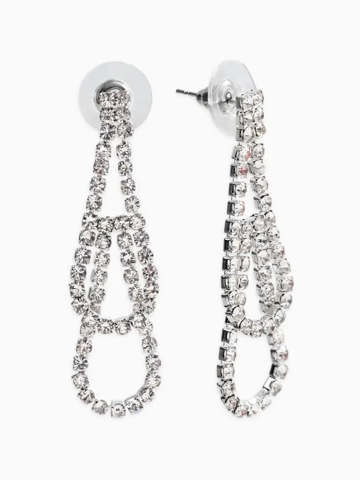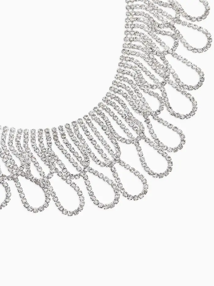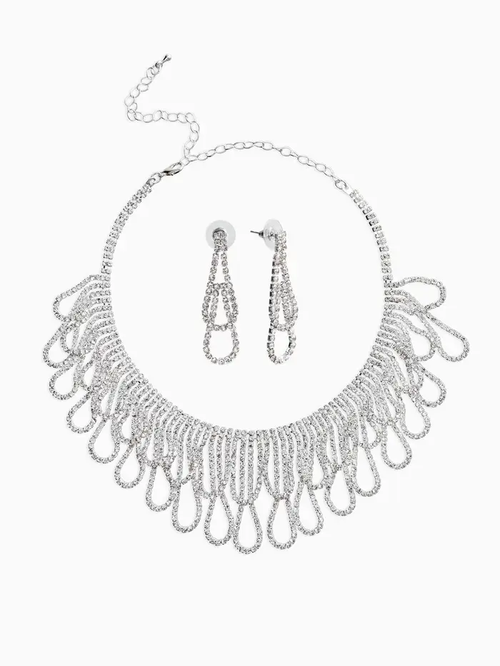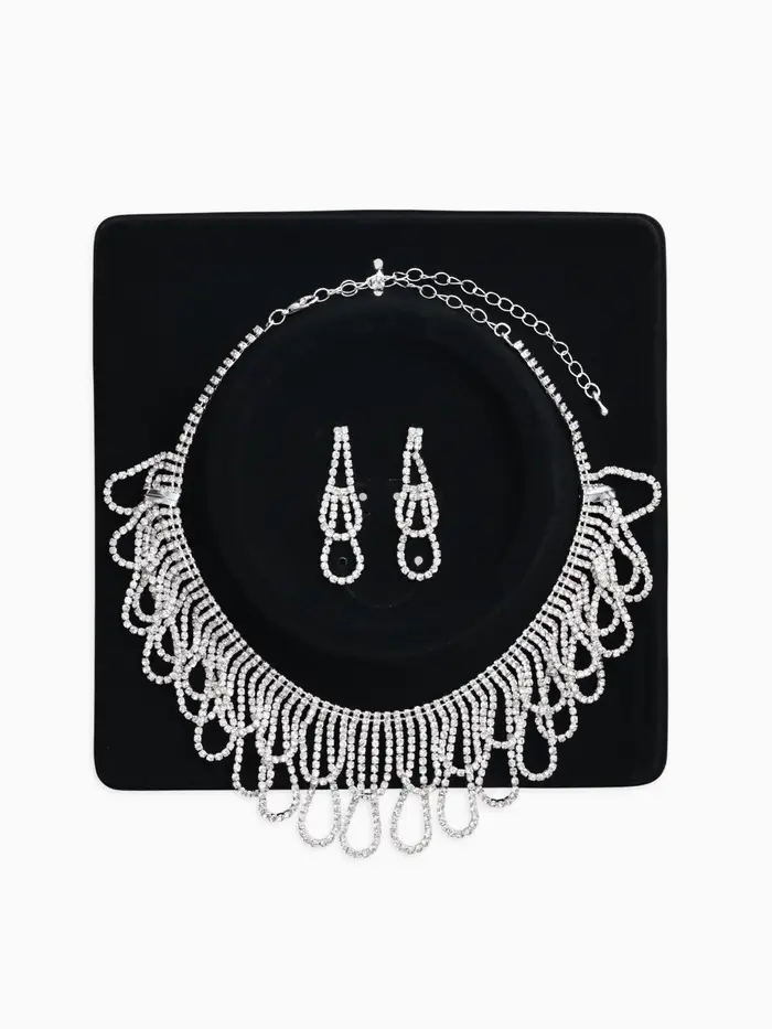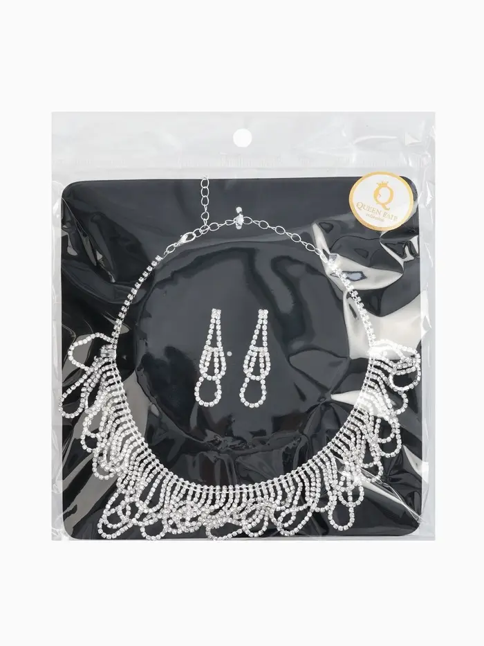 Набор 2 предмета: серьги, колье со стразами «Лёд». d=13.5 см, белый в серебре