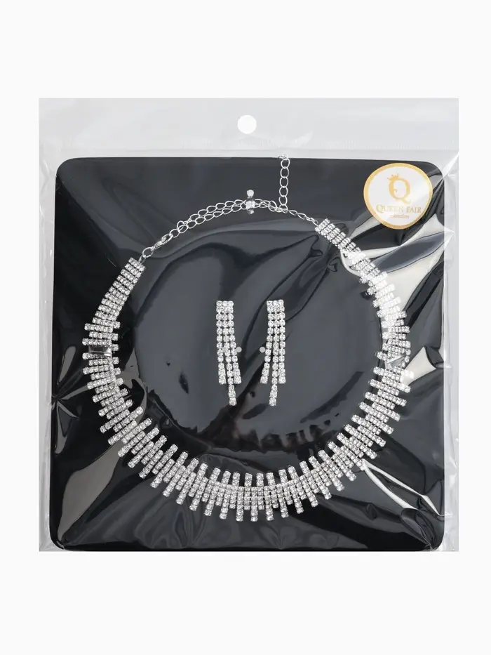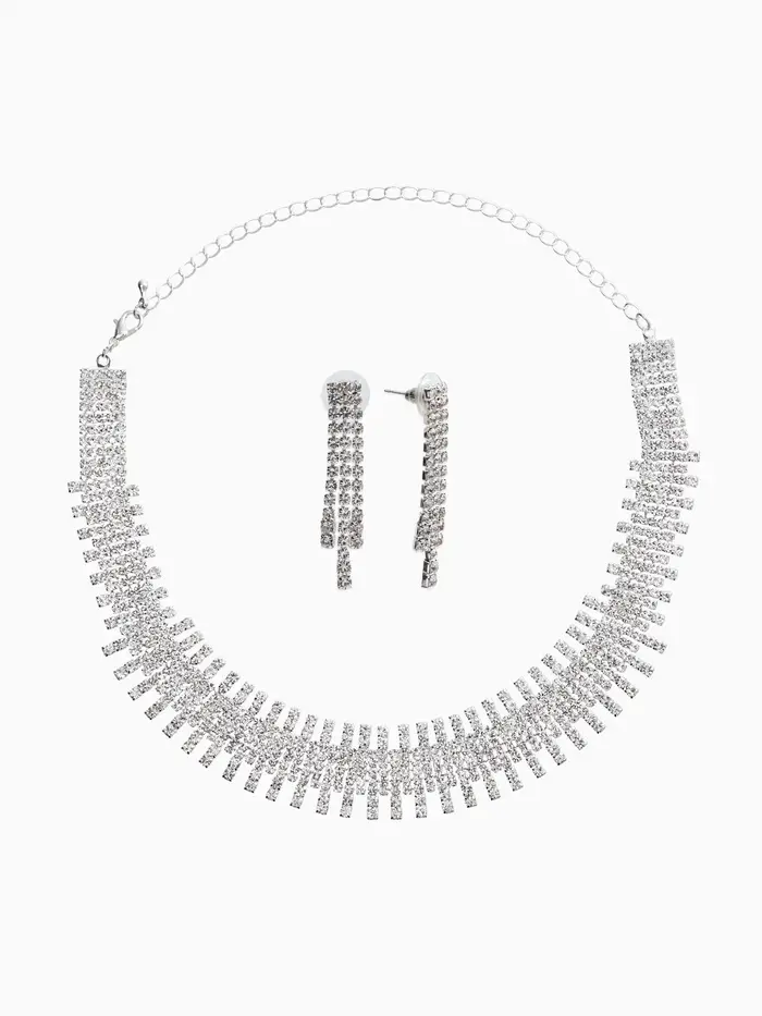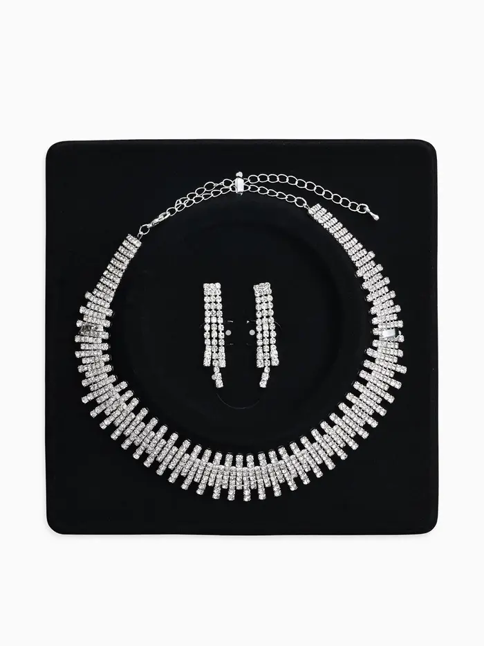 Хрустальный лед в вашем образе! Набор украшений «Лёд. Клавиши» сочетает элегантные серьги и изящное колье, щедро украшенные крошечными белыми стразами. Данный комплект предназначен для представительниц прекрасного пола, ценящих свежий и свободный стиль в украшениях.