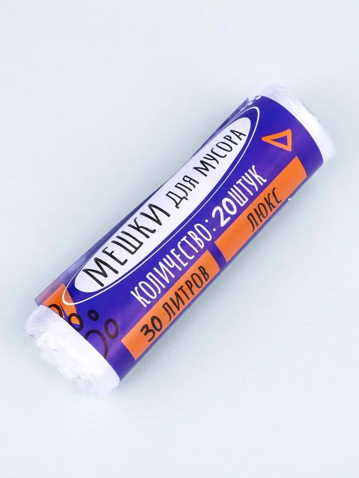 Мешки для мусора, 30 л, 50×60 см, 5 мкм, ПНД, 20 шт., прозрачные, в рулоне