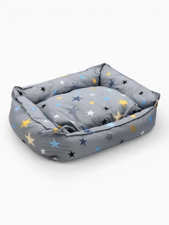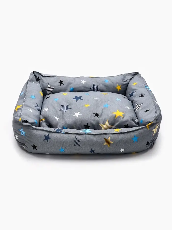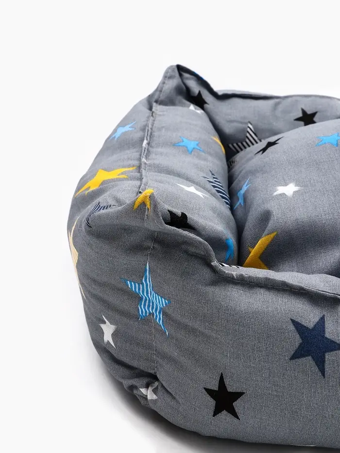 - Внутреннее наполнение: наполнитель закреплён строчкой по периметру и по центральным зонам. Это исключает смещение набивки даже при активном использовании. Поверхность остаётся ровной, без ям и бугров, — важное условие для суставов пожилых или склонных к артриту животных.