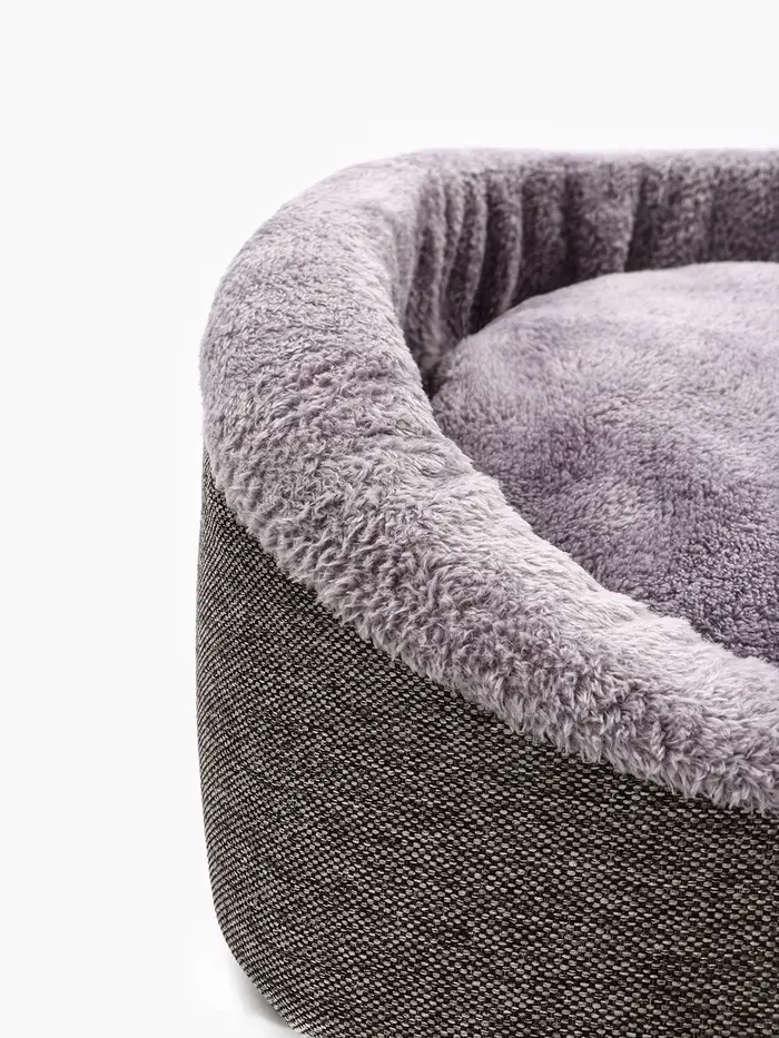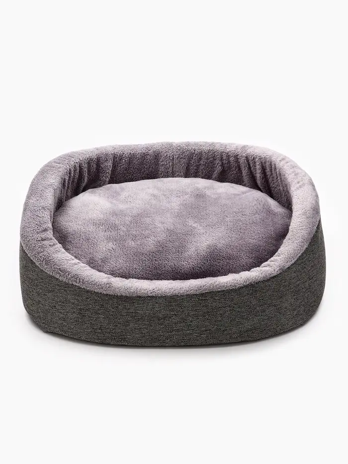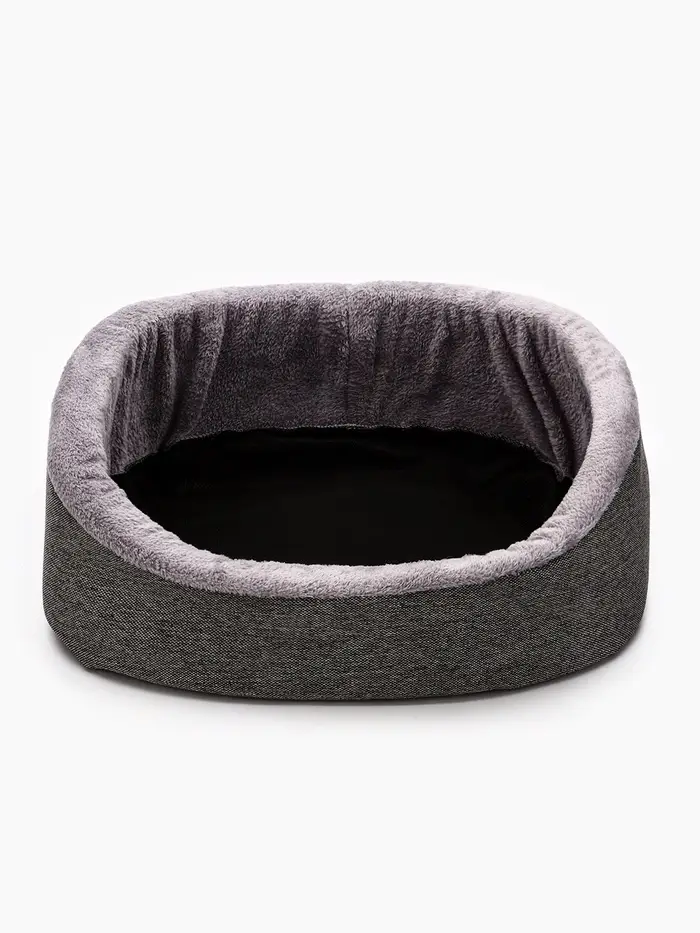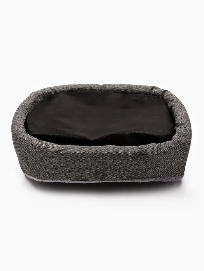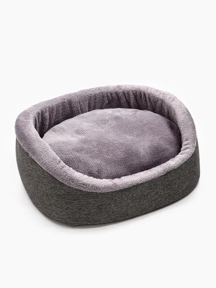 Мягкий контур для расслабленного состояния. Лежанка — не просто место для сна, а продуманная зона отдыха с анатомической логикой. Её фигурная форма повторяет естественные изгибы тела кошки или мелкой собаки в позе покоя: поддержка под грудью, пространство для лап, лёгкое обрамление без давления. Серый оттенок делает её нейтральным элементом интерьера — не привлекает внимание, но всегда на своём месте.