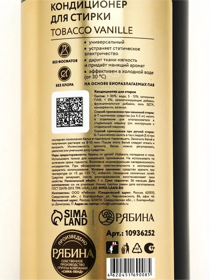 Кондиционер для белья парфюмированный Tobacco Vanille, 1000 мл, ULAB