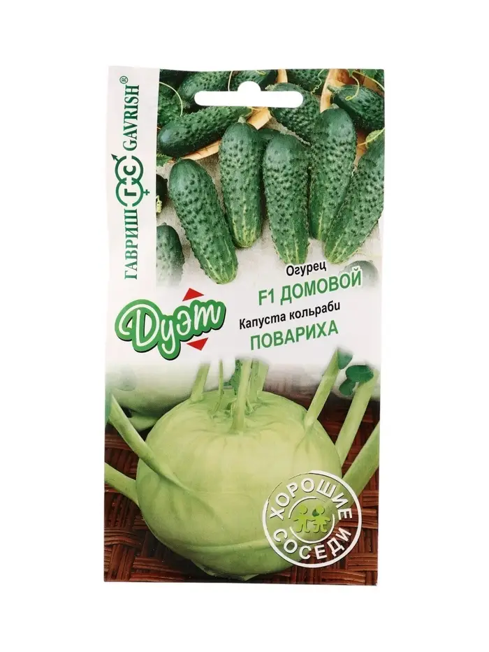 Семена Капуста кольраби Повариха 0,3 г+Огурец Домовой F1 0,3 г серия Дуэт Хорошие соседи