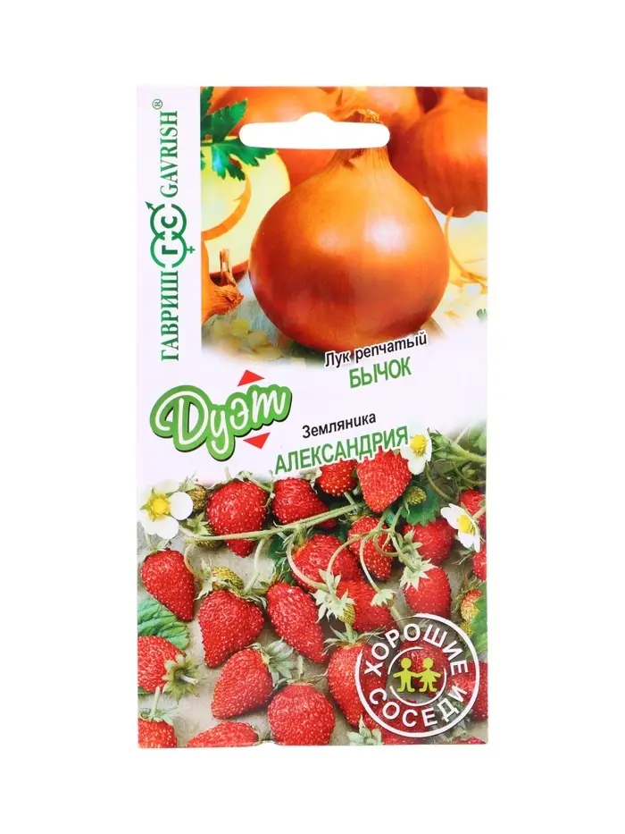 Семена Лук репч. Бычок 0,5 г+Земляника Александрия 0,03 г серия Дуэт Хорошие соседи