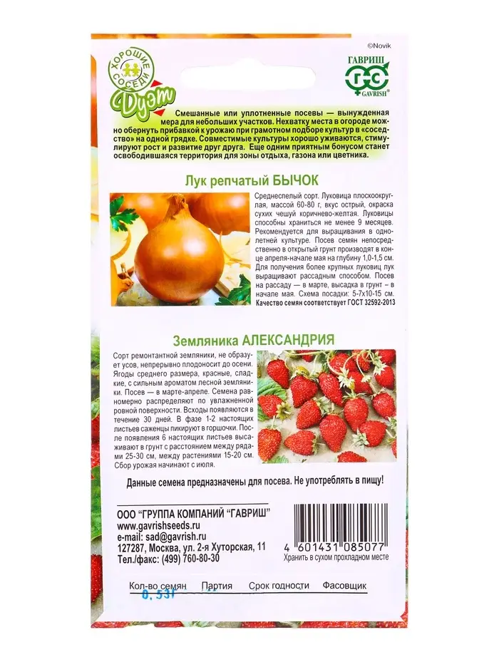 Семена Лук репчатый Бычок 0.5 г +Земляника Александрия 0.03 г Дуэт Хорошие соседи