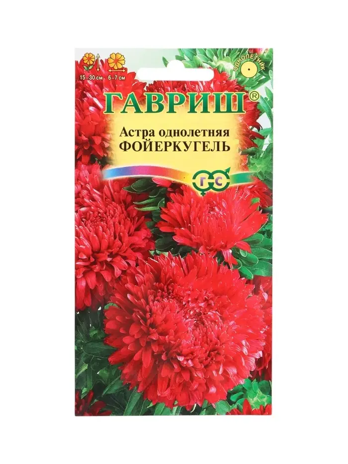 Семена цветов Астра Фойеркугель, однолетняя (карлик красная) 0,3 г