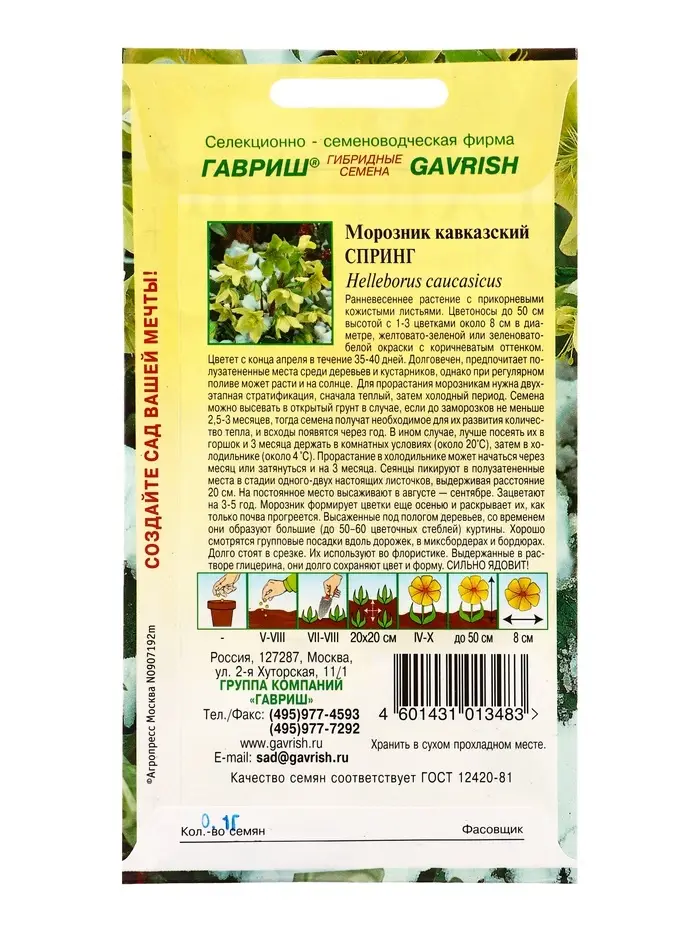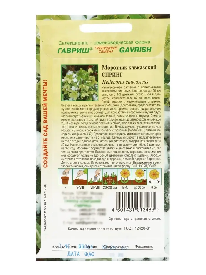 Семена цветов Морозник кавказский Спринг (лимонно-зеленый)* 0,1 г DHп