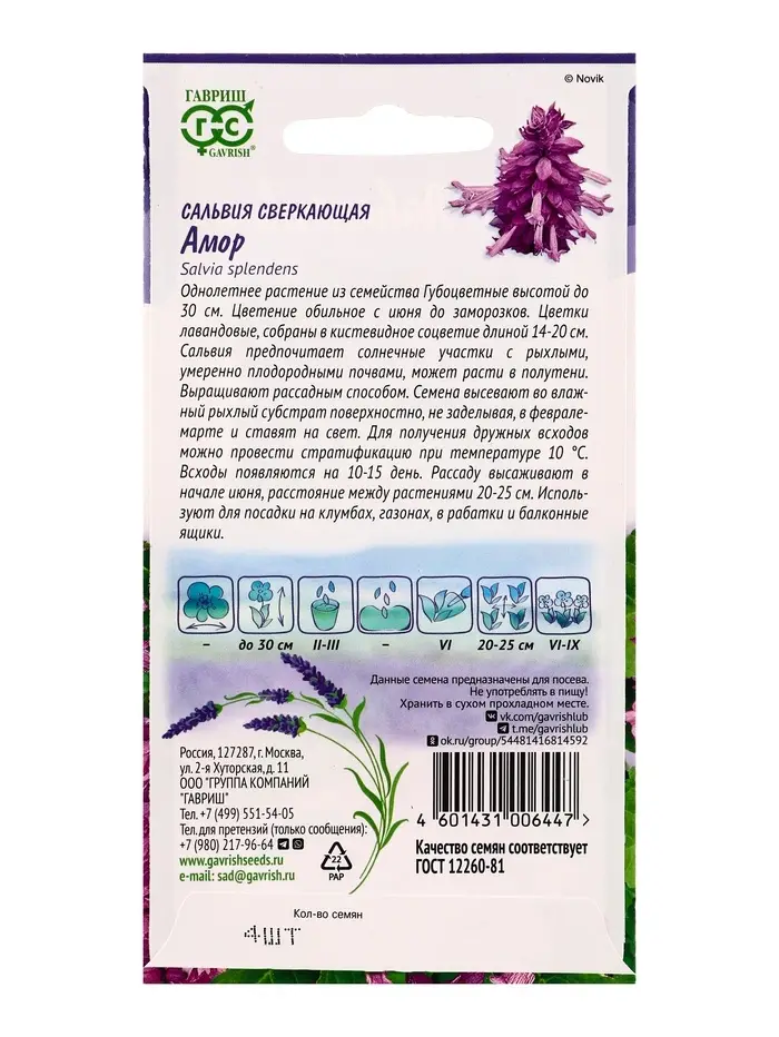 Семена цветов Сальвия Амор* 4 шт. серия Лавандовые грёзы