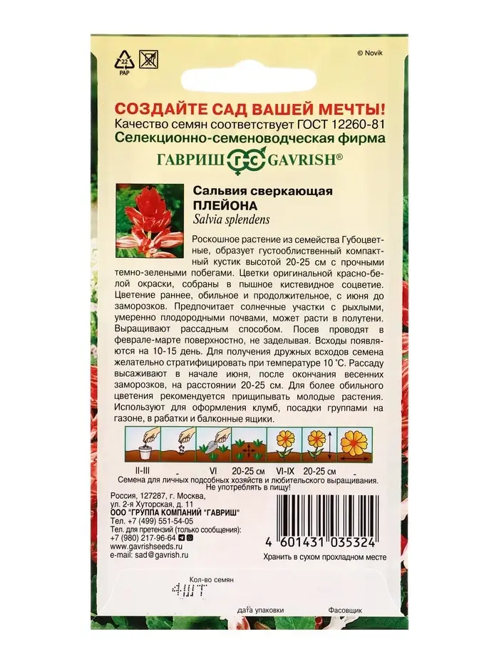Семена цветов Сальвия Плейона* карликовая 4 шт.
