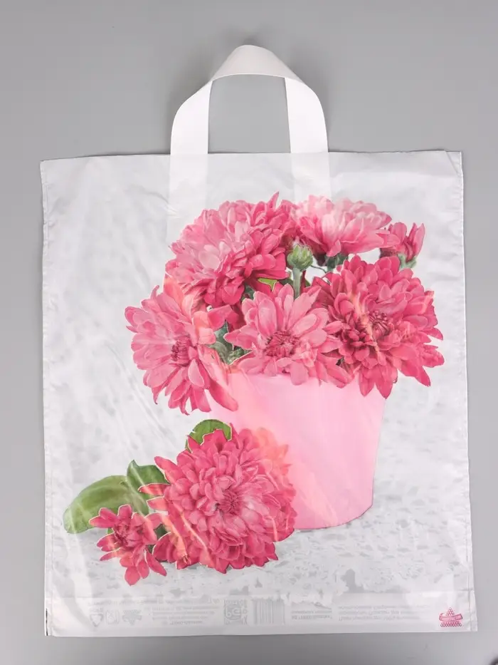 Пакет подарочный Хризантемы 40 х 36 см 37 мкм