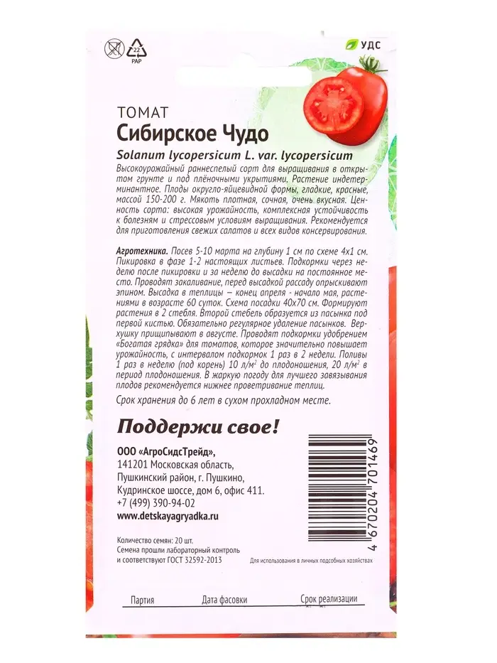 Семена Томат Сибирское Чудо 20 шт