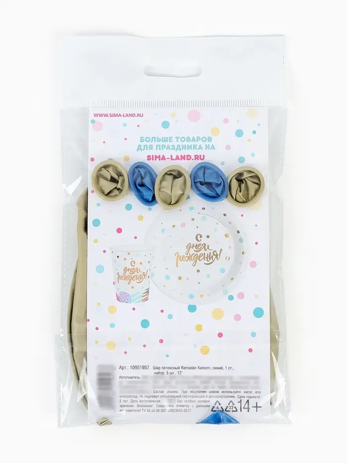 Шар воздушный 12" "Ramadan Kareem", синий 1 ст., набор 5 шт.