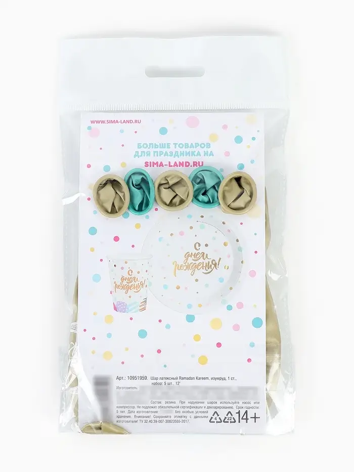 Шар воздушный 12" "Ramadan Kareem", изумруд 1 ст., набор 5 шт.