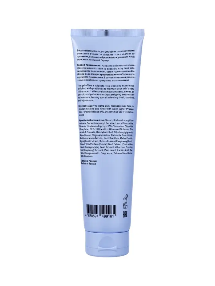 Вода, лауроил саркозинат натрия, кокамидопропилбетаин, лаурил глюкозид, глицерин, линоламидопропил ПГ-димониум хлорид фосфат, пэг-120 метилглюкозы диолеат, кокоат глицерет-2, бензиловый спирт, этилгексилглицерин, альфа-глюкан олигосахарид, сок корня якoна, мальтодекстрин, лактобактерии, экстракт яблока, экстракт малины, экстракт винограда, экстракт граната, экстракт калины чернолистной, пантенол, молочная кислота, бетаин, хлорфенезин, отдушка, диацетат глутамата тетранатрия