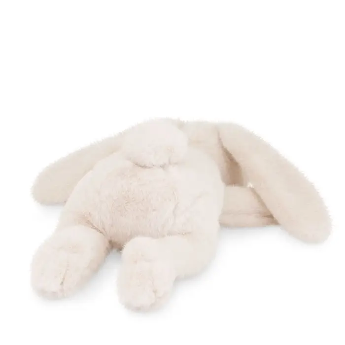 Игрушка выполнена из искусственного меха, который мягкий и приятный на ощупь. Внутри — наполнитель из синтепона, благодаря которому зайчик хорошо держит форму и остаётся комфортным при ежедневном использовании. Светлый оттенок и лаконичный дизайн позволяют использовать игрушку не только для игры, но и как элемент уюта в детской комнате.