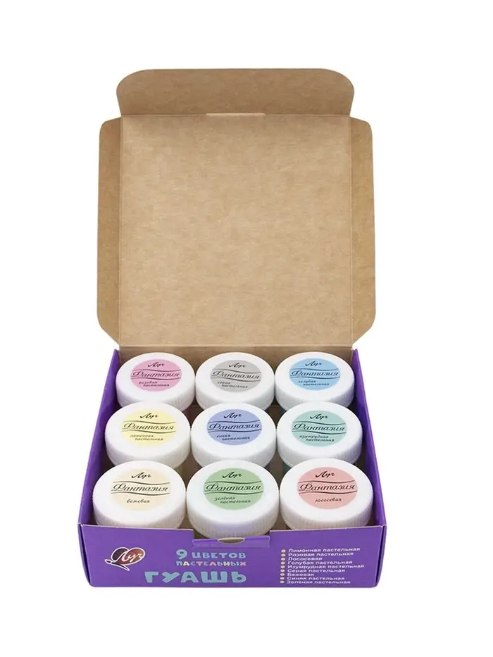 Гуашь 9цв*15мл Луч "Фантазия", пастельная