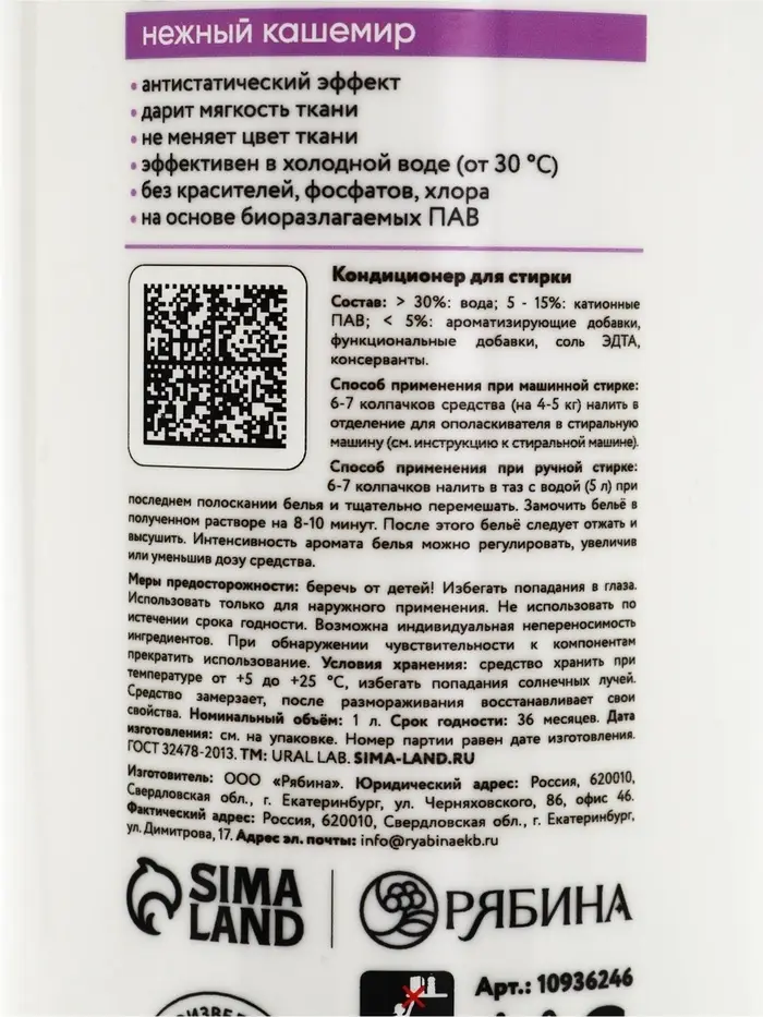 Кондиционер для белья, аромат нежный кашемир, 1000 мл, ULAB