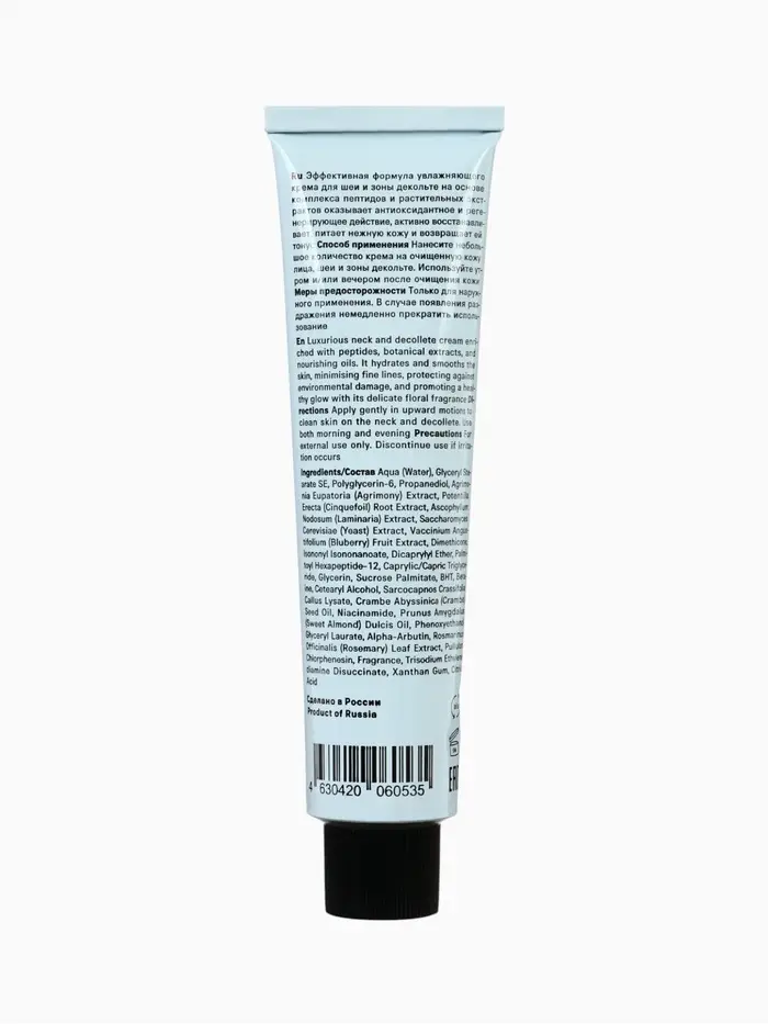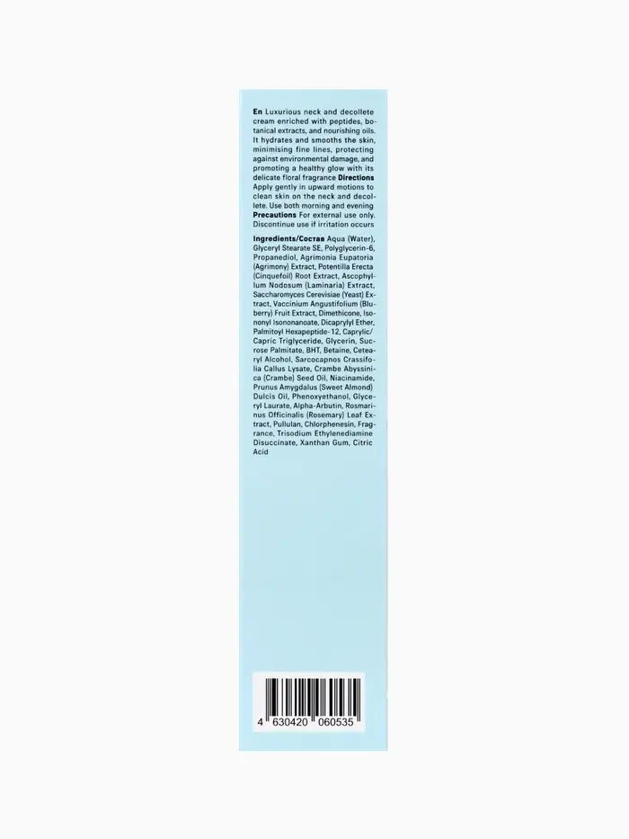Крем мягко разглаживает поверхность кожи, укрепляет её защитный барьер и делает контуры шеи и декольте более подтянутыми и ухоженными. Лёгкая текстура быстро впитывается, не оставляет липкости и обеспечивает комфорт в течение дня.