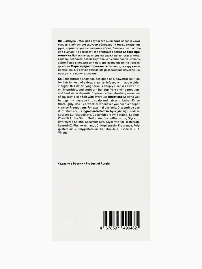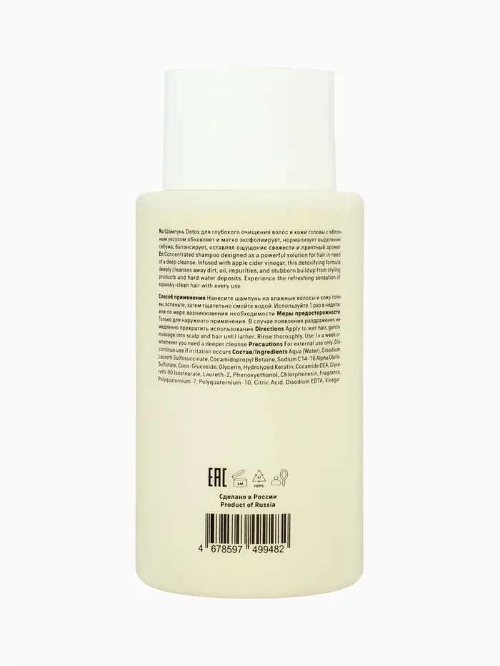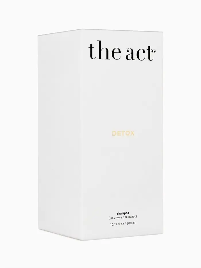 Глубоко очищающий шампунь DETOX с яблочным уксусом и гидролизованным кератином The Act, 300 мл — эффективное средство для глубокого очищения волос и кожи головы. Шампунь мягко удаляет загрязнения, излишки кожного жира и остатки стайлинговых средств, не повреждая структуру волос. Волосы становятся более мягкими, блестящими и оживлёнными.