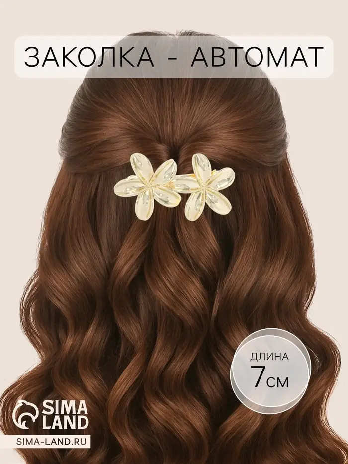 - Компактный размер 7 см: Заколка оптимальна для средних и длинных волос. Она не выглядит громоздко, но при этом крепко удерживает объем. С ней удобно делать пучки, хвосты, фиксировать боковые пряди или украшать сложную прическу.