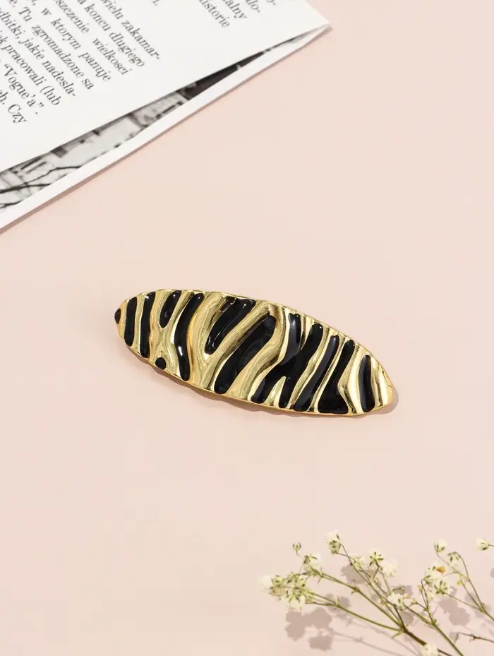 Заколка-автомат для волос "Филомена" овал, 8,5 см, чёрно-золотой