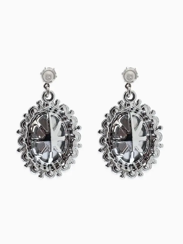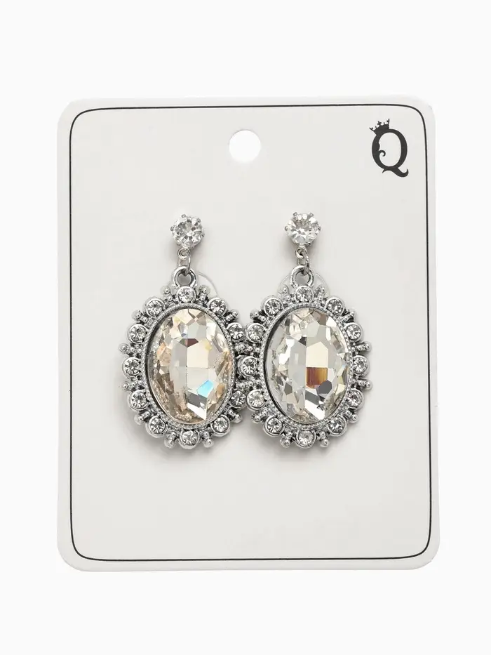 Серьги со стразами "Овал грань", цвет белый в серебре