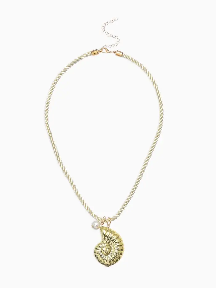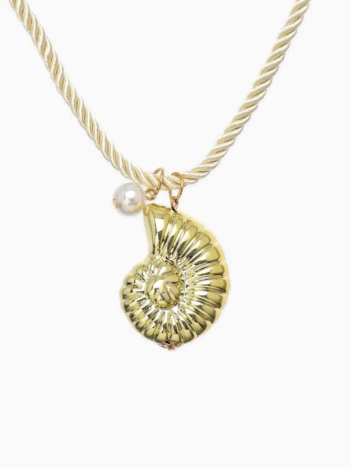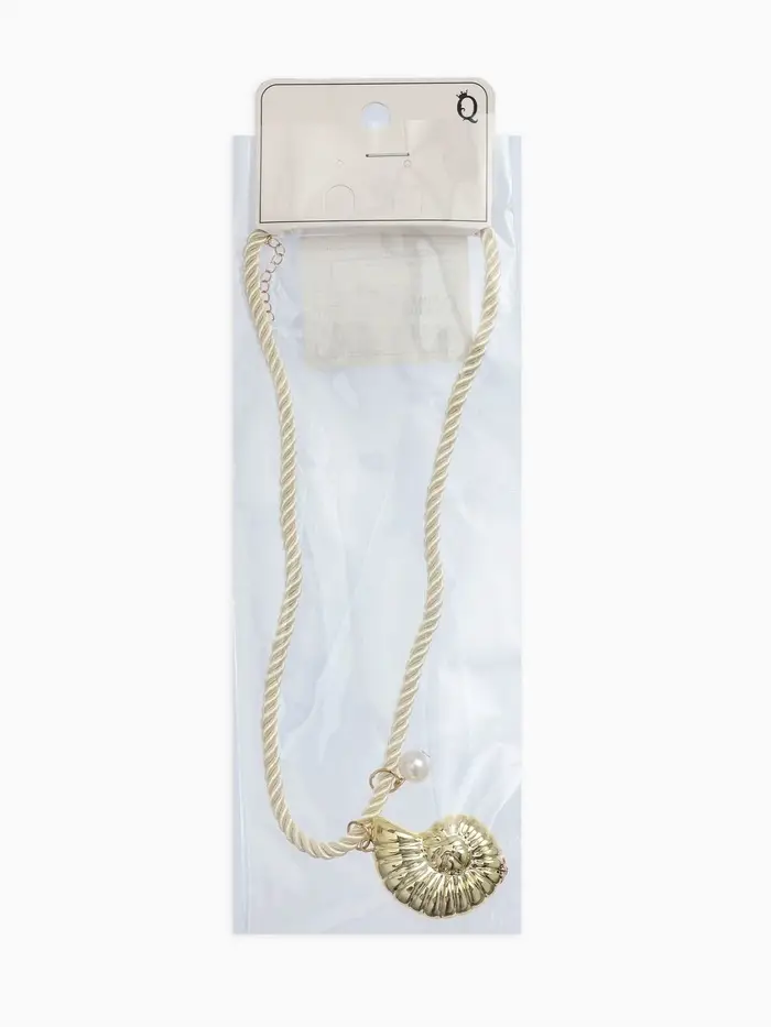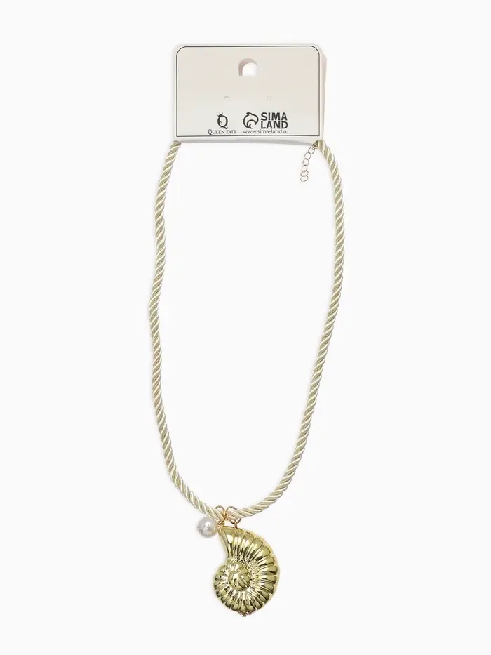 Кулон на жгуте текстильном "Ракушка", цвет бело-золотой