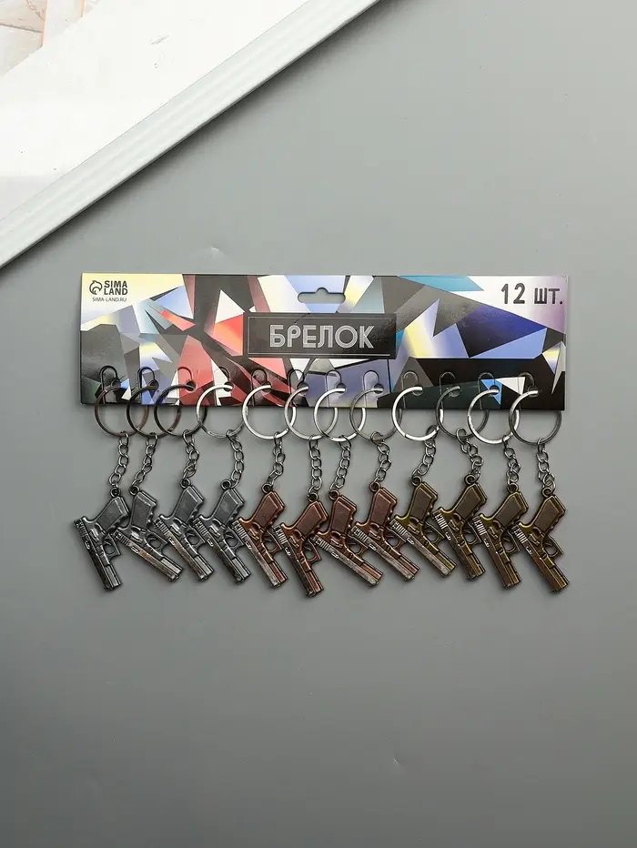 Брелок металл "Пистолет" двигается затвор МИКС 3х4,3х0,5 см