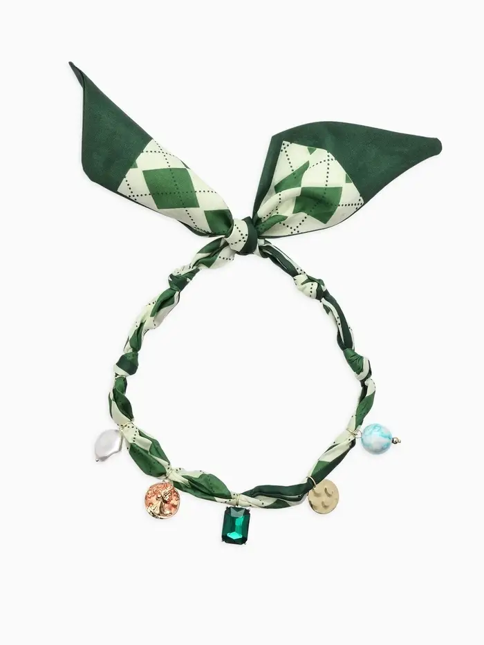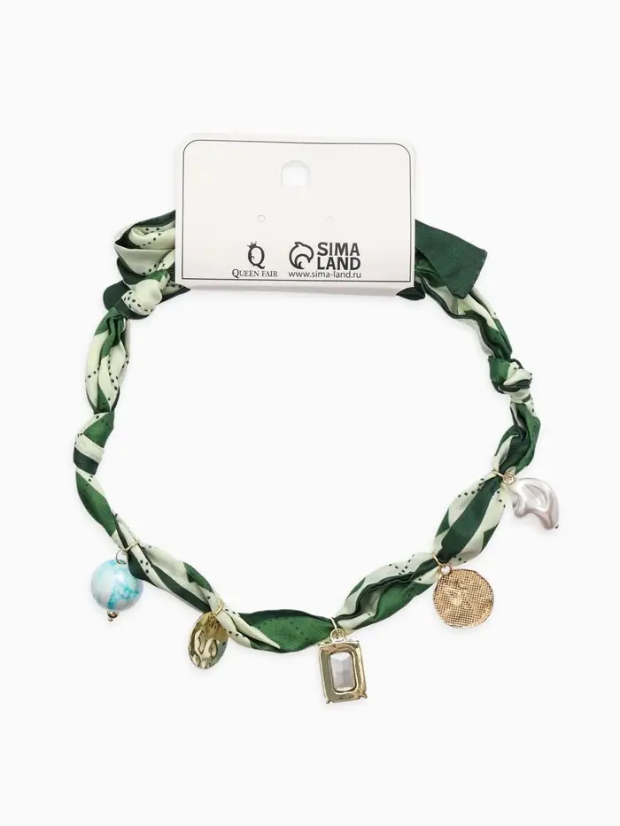 Колье-чокер на платке "Стиль". цвет изумрудный с золотом