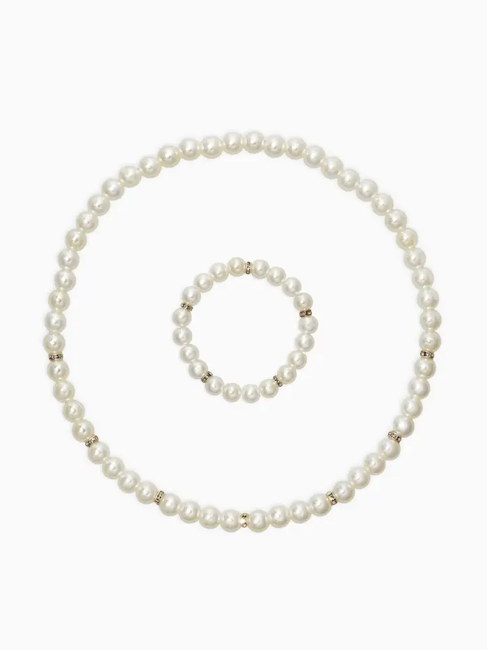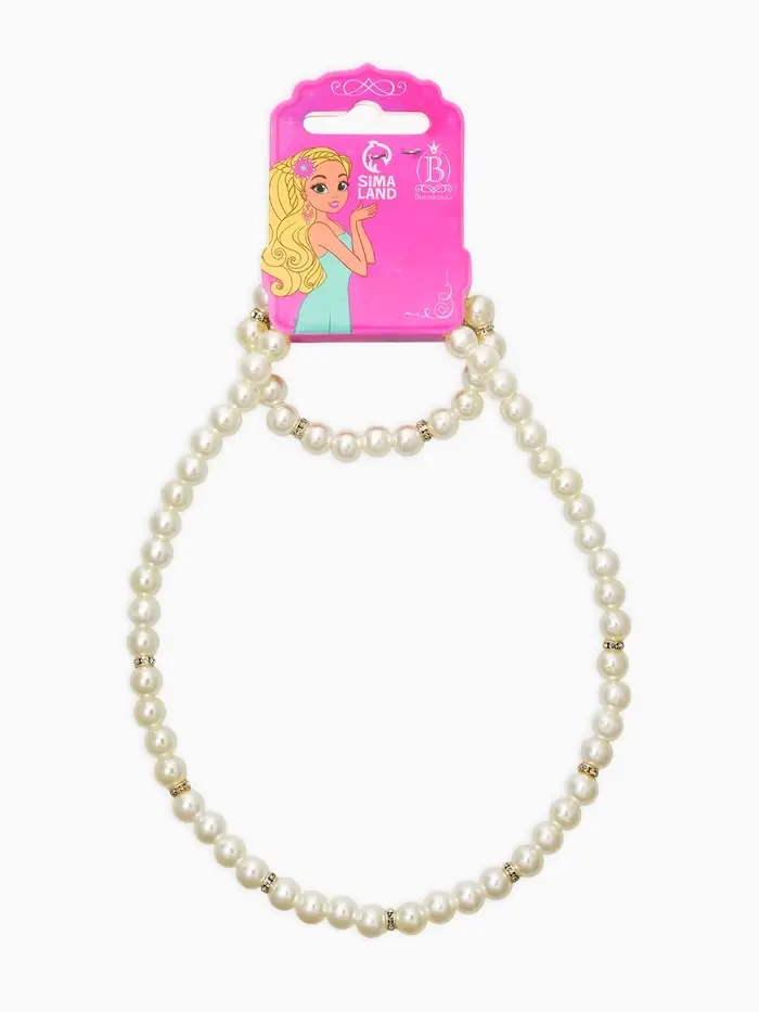 Набор детский «Выбражулька» 2 предмета: бусы, браслет, жемчуг стразы, цвет белый