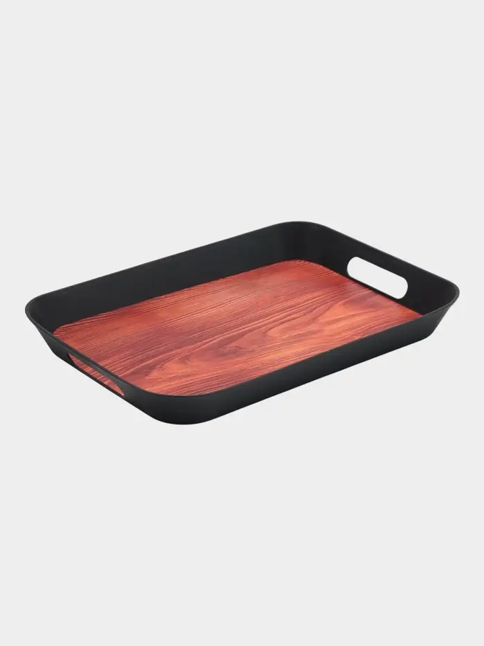 Поднос для подачи с ручками "ФьюженВуд", прямоугольный, 32х23х3,8 см, цвет черный, пластик 1091821
