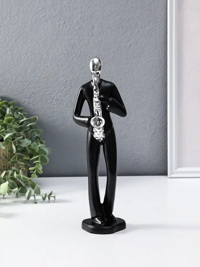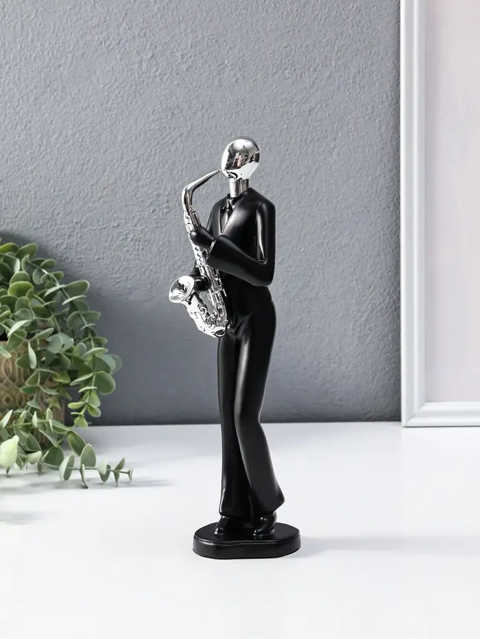 Сувенир полистоун "Саксофонист" чёрный с серебром 7х8,5х27,5 см