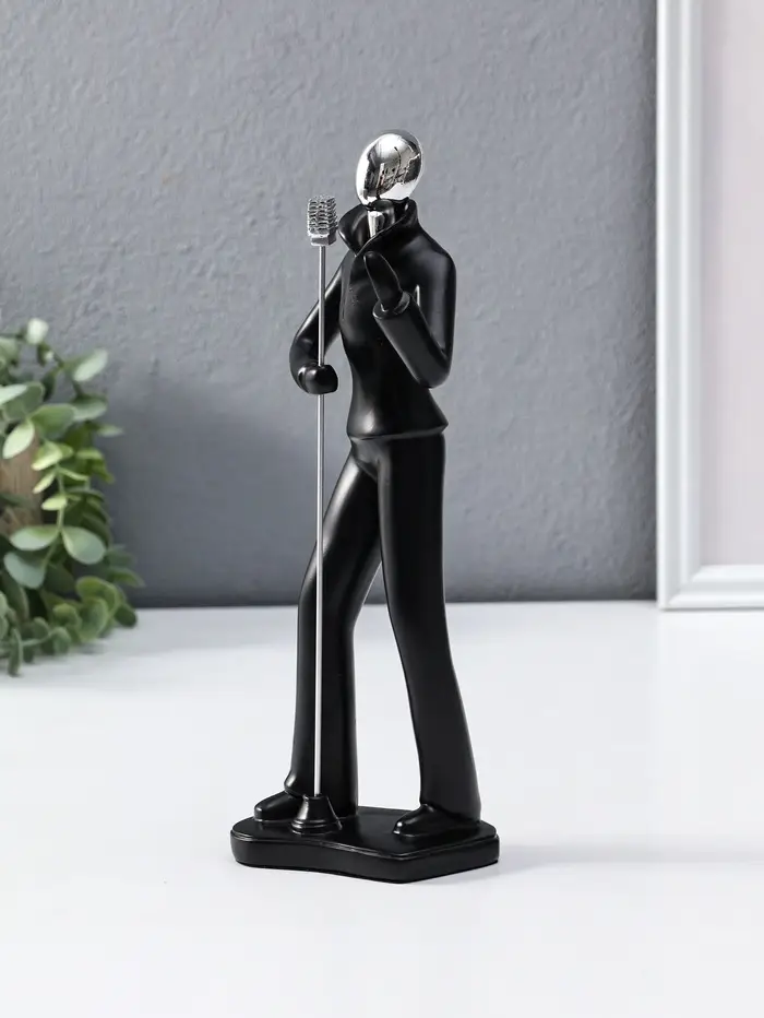 Сувенир полистоун "Вокалист" чёрный с серебром 6,5х10х26,5 см