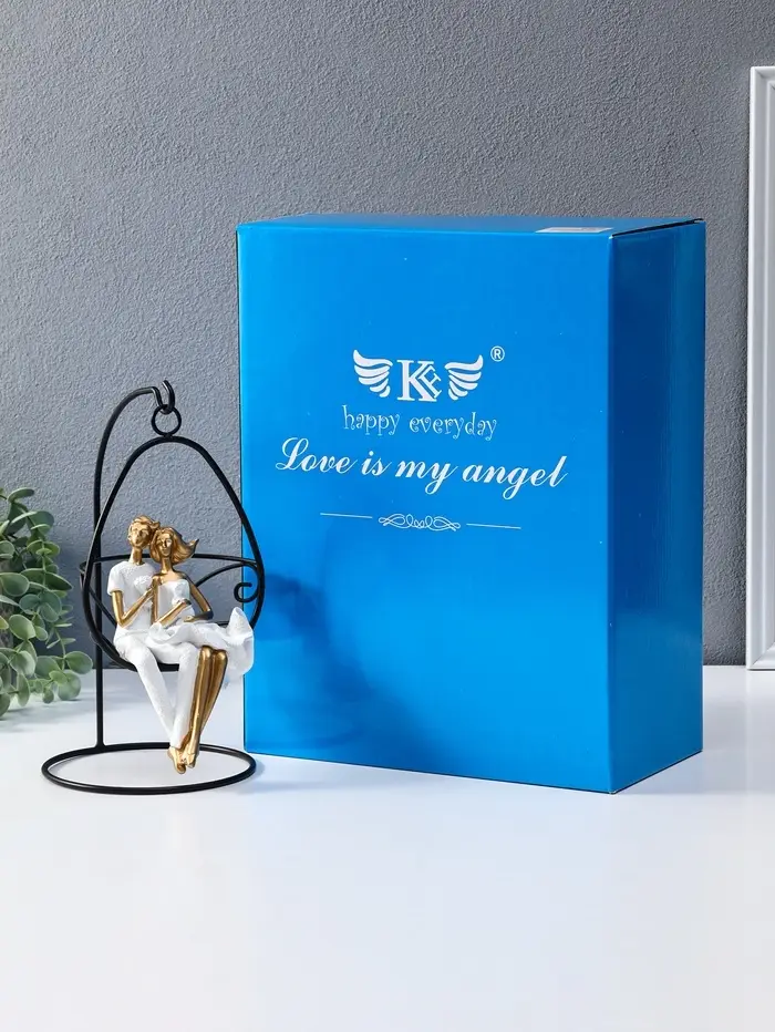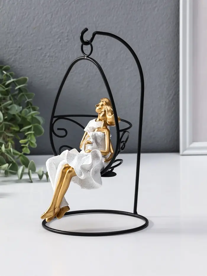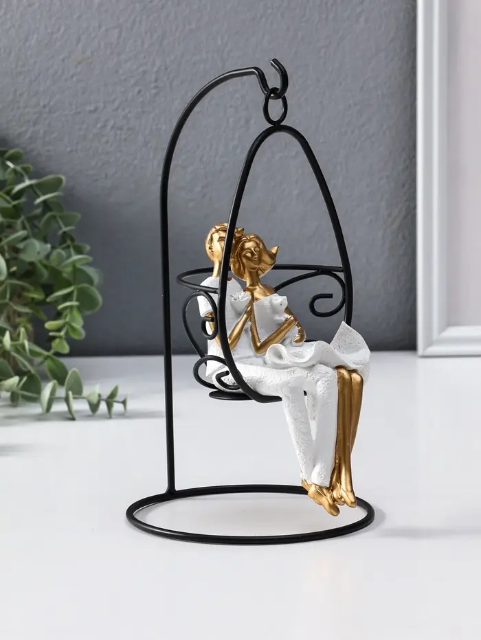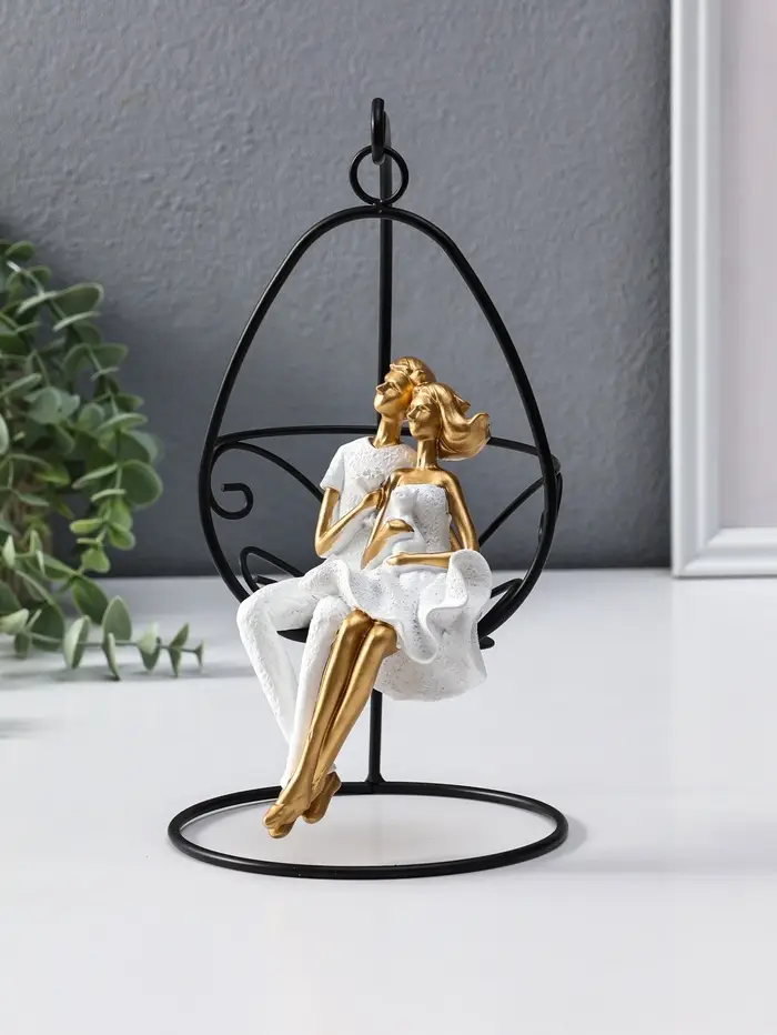 Сувенир полистоун "Парочка качается на качеле" бело-золотой 13,5х13,5х26 см