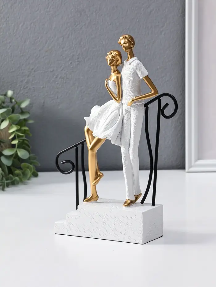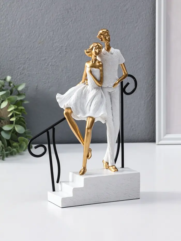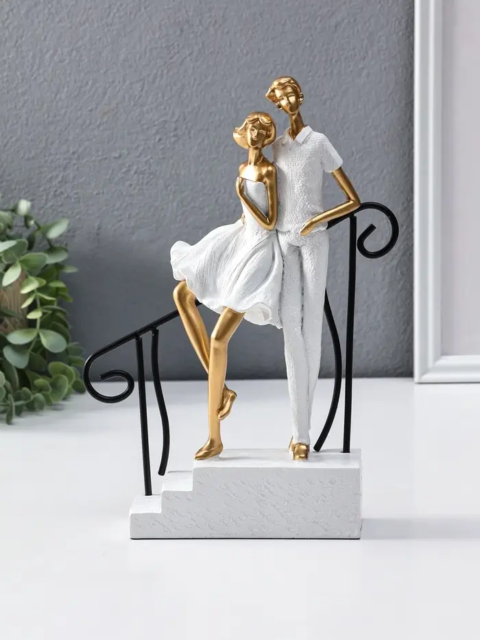 Сувенир полистоун "Парочка стоит у перил" бело-золотой 5,5х20х26,5 см