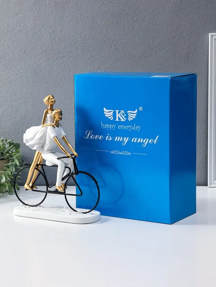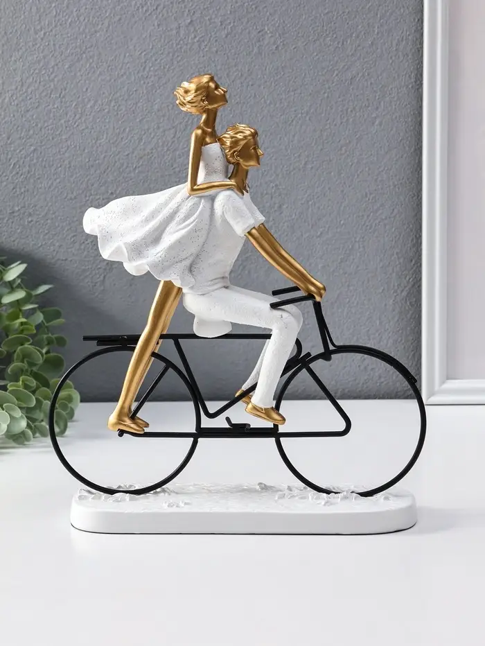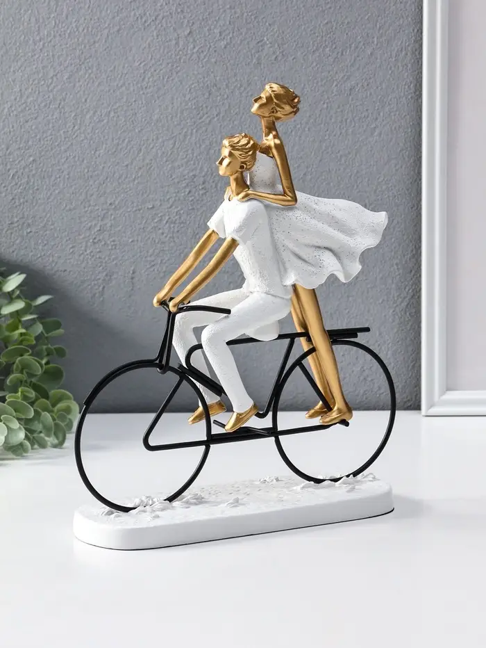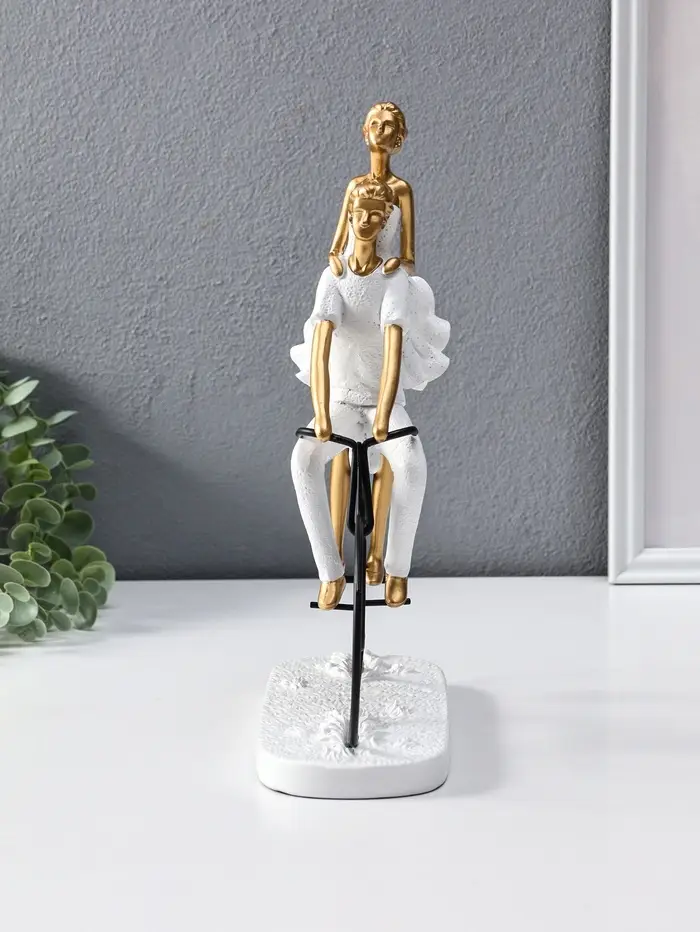 Сувенир полистоун "Парочка на велосипеде" бело-золотой 8,5х23х29 см