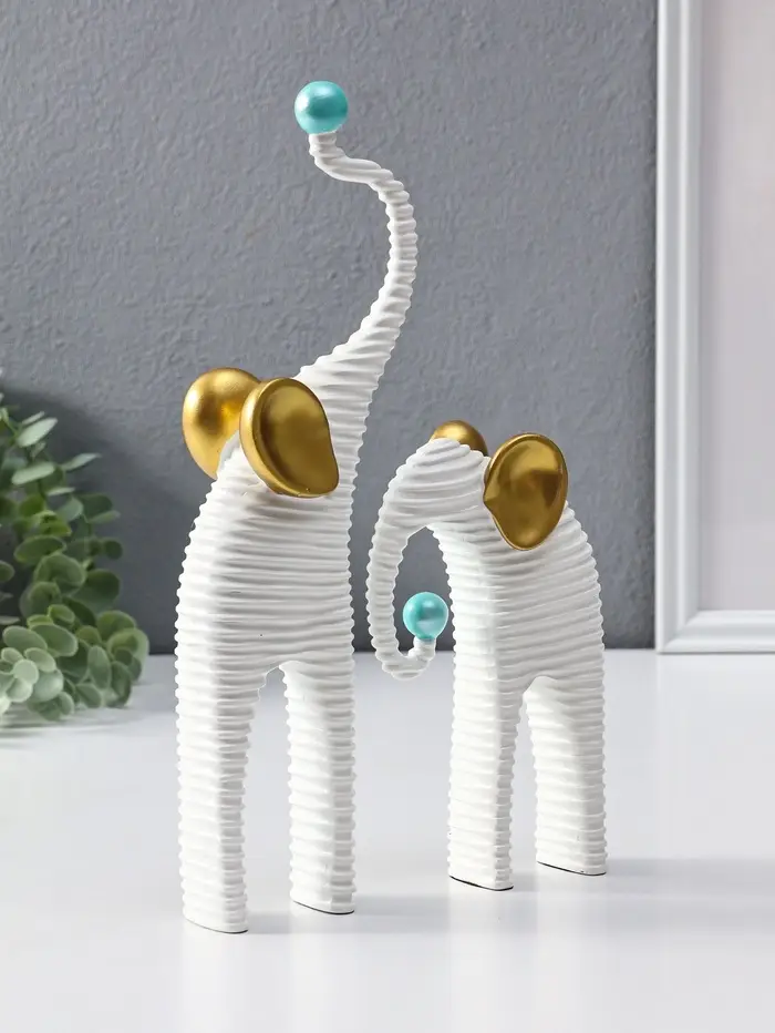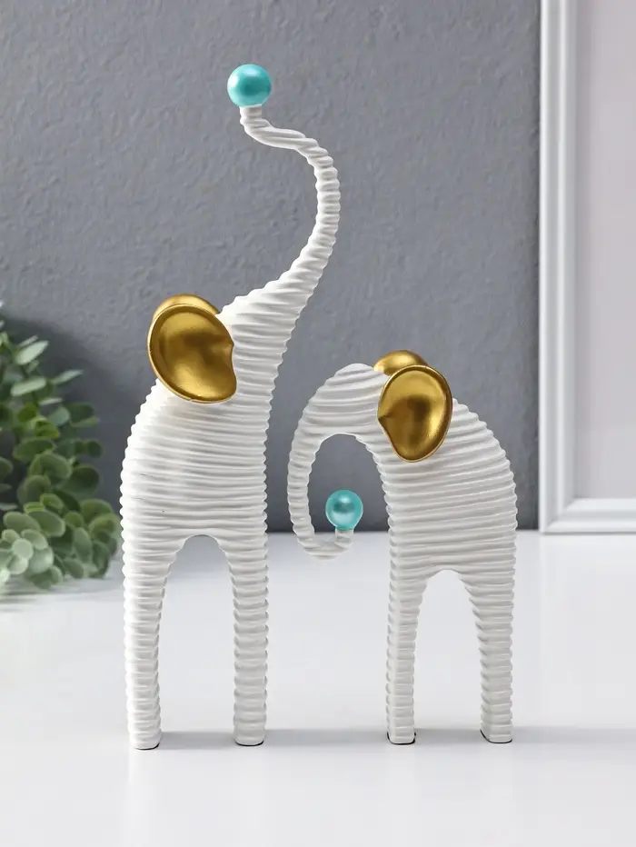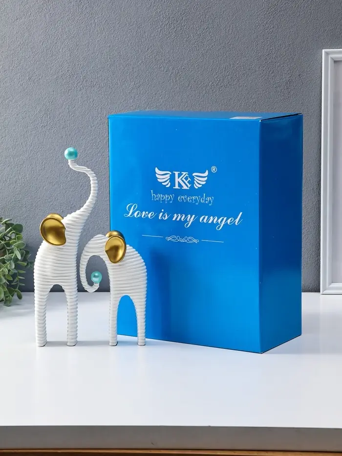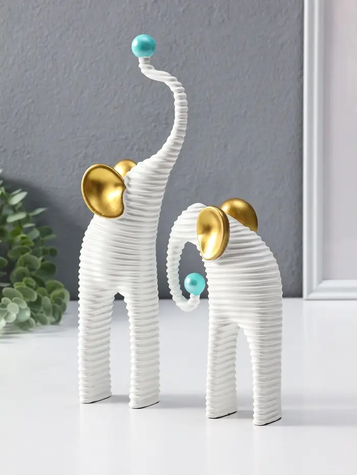 Сувенир полистоун "Слоны. Гофре" белый с золотом набор 2 шт 5х10х16,5 5,5х16,5х29,5 см